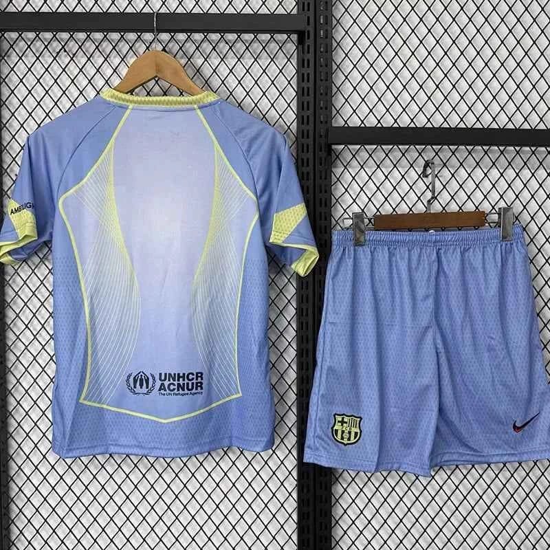 The Barcelona 25-26 Grey Blue Concept Edition is the perfect training kit for young football enthusiasts. Designed for comfort and performance, this edition showcases the vibrant colors of Barcelona while ensuring players can train at their best. With a breathable fabric that keeps kids cool during intense training sessions, this kids’ training kit is a must-have for aspiring athletes.