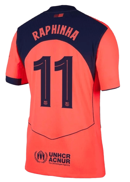 The BARCELONA RAPHINHA #11 THIRD JERSEY Player Version is a must-have for any FC Barcelona fan. This jersey, designed for the 2025/26 season, showcases the skill and flair of one of the team’s most exciting players, Raphinha, wearing the iconic #11. Crafted for optimal performance, this jersey is perfect for both on-pitch action and off-pitch style.